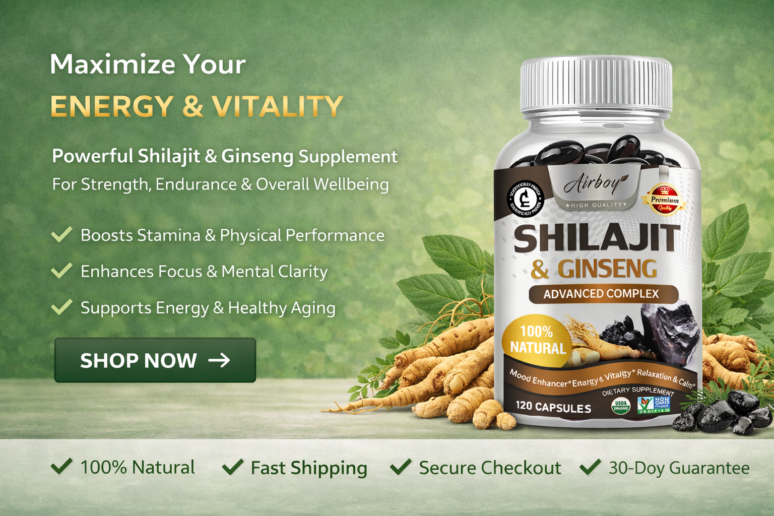 Our premium Shilajit & Ginseng formula is carefully crafted to support natural energy, cognitive performance, and immune health. Designed for daily vitality and long-term wellness support.